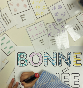 Possibilité de le faire aussi sous forme de jeu : on pioche chacun son tour une carte / ou on lance les dés graphiques ( dispo sur le blog également ).