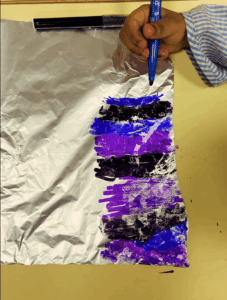 Étape 1 : réaliser le fond avec la technique du papier aluminium.