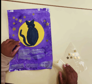 Étape 4 : peindre en noir la silhouette d’un chat.