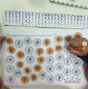 On peut donner une bandelette alphabétique pour aider ceux qui en ont besoin, moi j’utilise celle que vous pouvez voir sur la photo elle vient du blog de @mcenmaternelle .