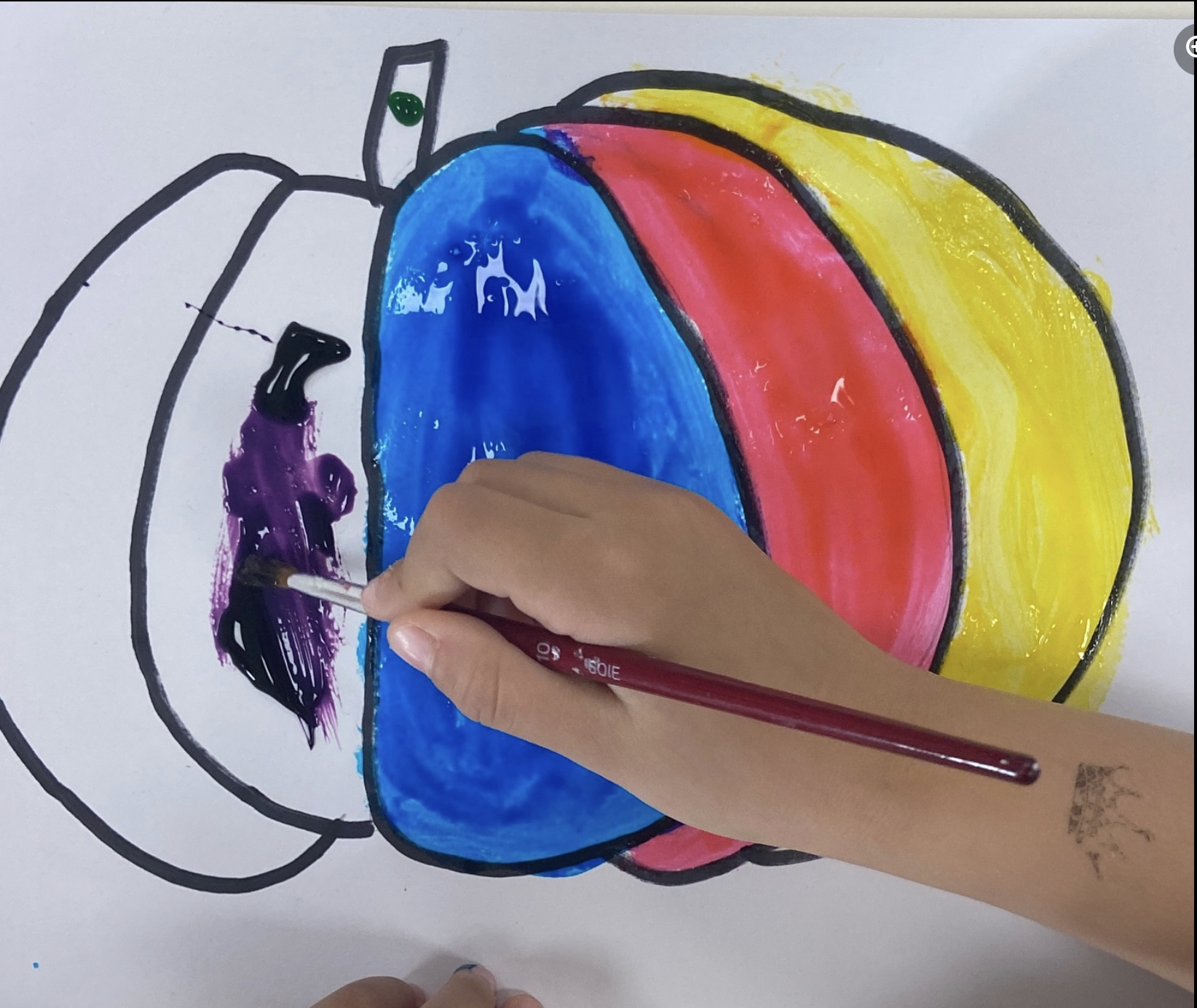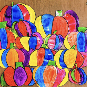 Mise en couleur d’une citrouille ( modèle à télécharger CI-DESSOUS) en changeant de couleur à chaque fois .