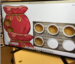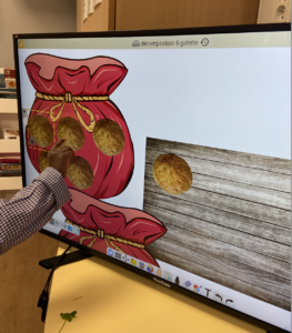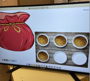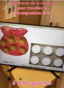 Étape 1 : chanson 6 belles galettes ( inventée pour cette activité) +mise en image sur notre écran viewsonicfrance qui nous sert de tableau blanc