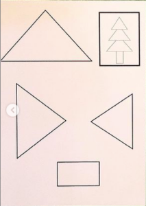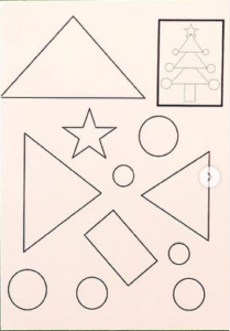 Pour mes PS pas de découpage pour le moment mais selon le niveau de votre enfant vous pouvez proposer le découpage.Ici, ils doivent coller les formes au bon endroit sur le modèle pour recomposer le sapin. Possibilité de faire colorier ou d’imprimer les formes sur du papier coloré. Puis on ajoute des gommettes pour décorer.