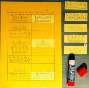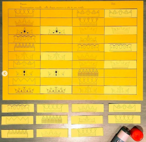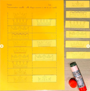 Le document est disponible sur le blog en deux versions : une version fiche comme sur les photos où il faut découper et coller les couronnes et une seconde version sans consigne pour faire un atelier plastifié et ainsi un support réutilisable.
