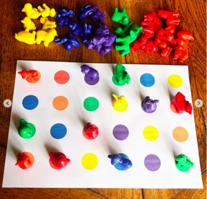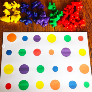 Il faut placer un animal sur chaque rond de couleur.