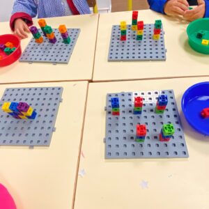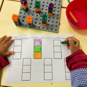 Étape 2 : manipulation avec les cubes emboîtables sur une grille.